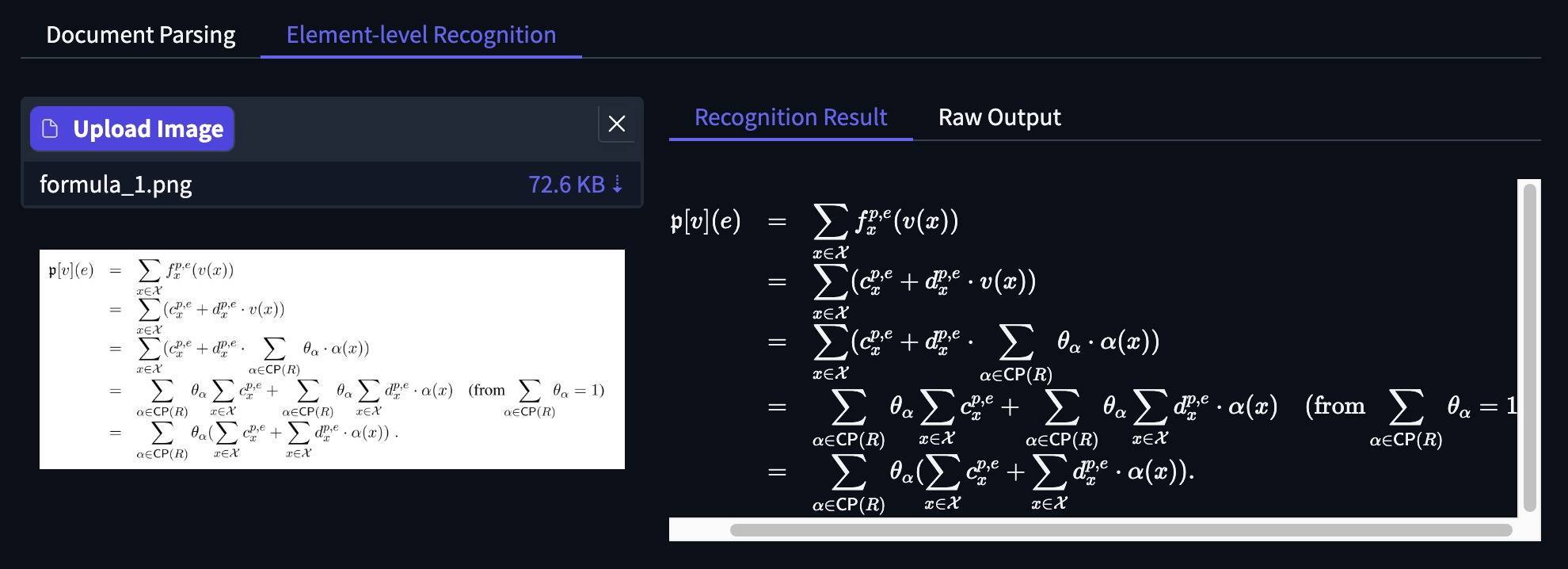 公式识别方面,智东西上传了一张包含公式的图片,模型将复杂公式的细节都进行了准确识别。