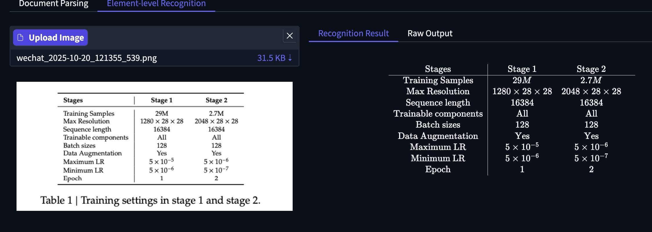 在用于元素识别的PaddleOCR-VL-0.9B训练方案方面,PaddleOCR-VL-0.9B包含三个模块:视觉编码器、投影仪和语言模型。其采用预训练模型的后自适应策略,视觉模型使用Keye-VL的权重初始化,语言模型使用ERNIE-4.5-0.3B的权重初始化。