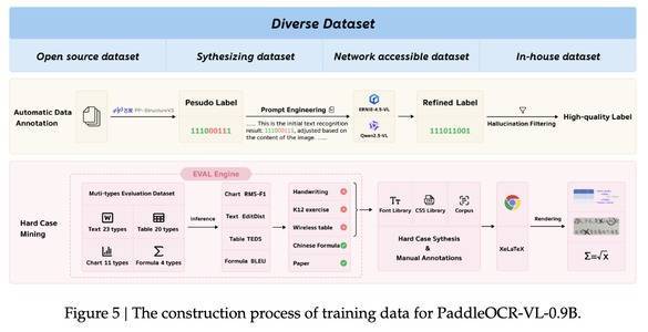 ▲PaddleOCR-VL-0.9B训练数据的构建过程