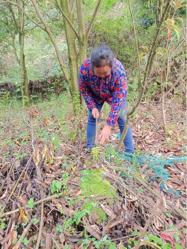 图:彭水县联合乡镇护林人员李芬(化名)正在清理枯枝千汇网
