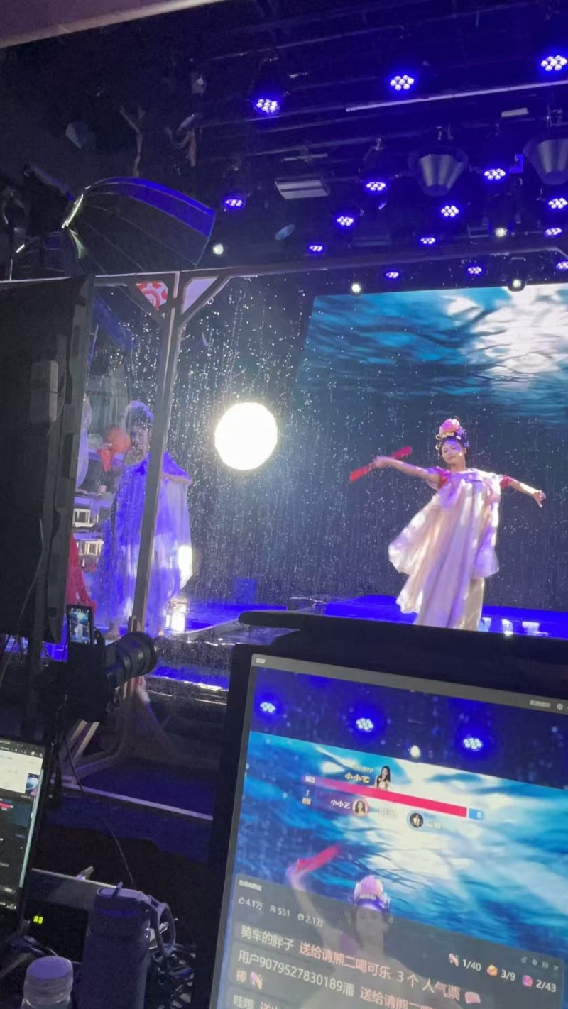 陕西省歌舞剧院直播间里杨方策略,演员在水舞台上翩翩起舞