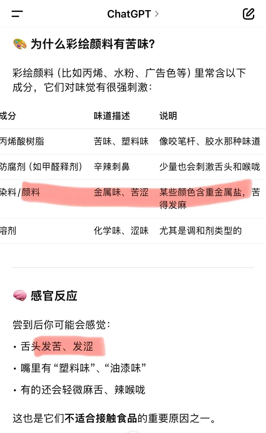 有资料显示,彩绘颜料是苦的,苦得发麻,还会有塑料味、油漆味。