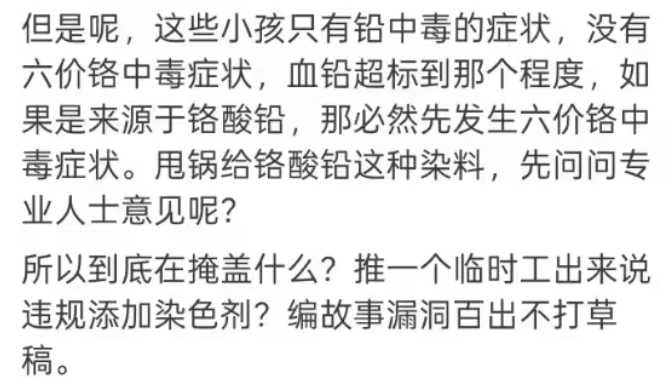 有学化学的网友分析称,彩绘颜料导致铅中毒,从专业分析上根本站不住脚。