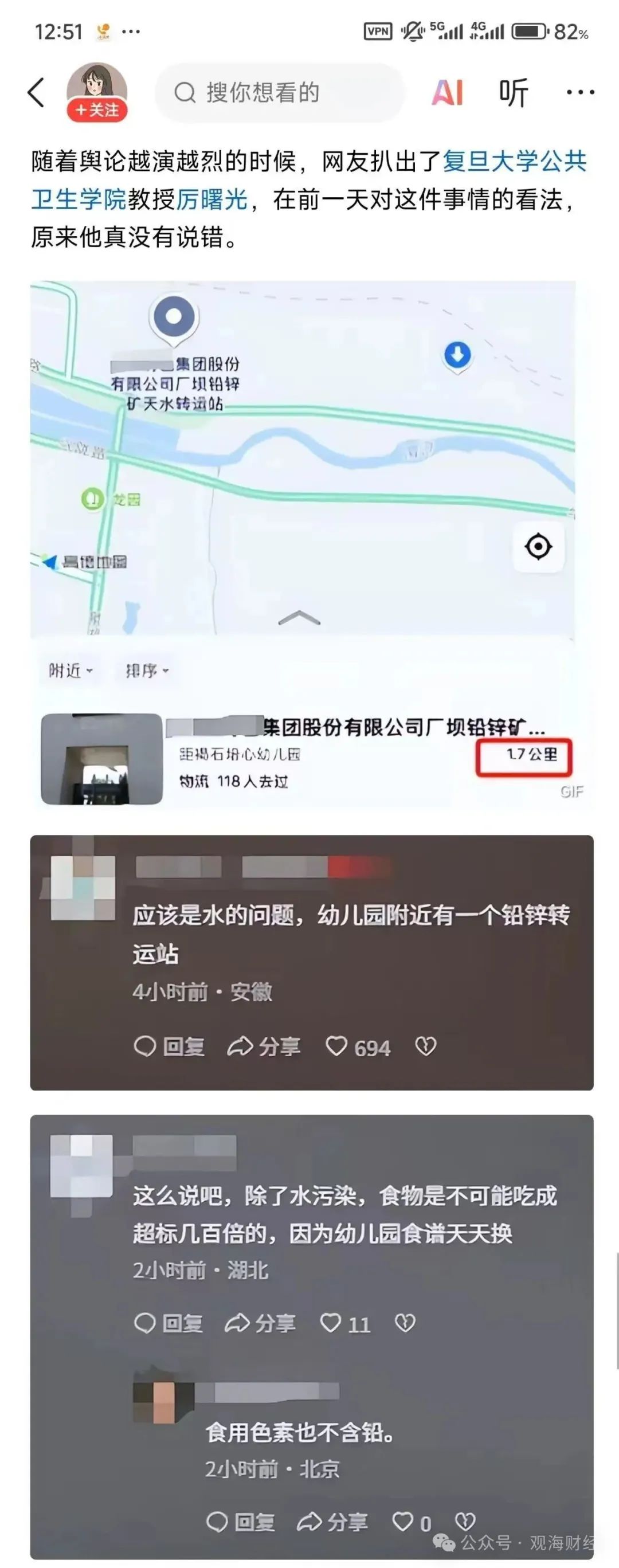 当地网友明确表示,离幼儿园两三公里的地方,有一个化工厂。